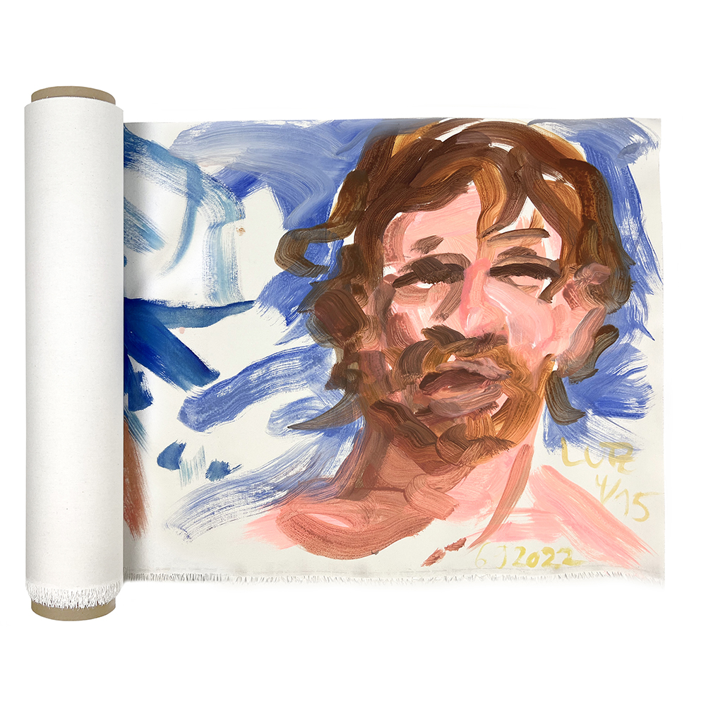 Each is different and unique. The edition was created by printing three of his motifs on a 305 x 54 cm canvas. Subsequently, another fourth hand-painted motif by Lutz was added, which varies with each work. Each edition have a different final motif, the work is delivered rolled and can be placed freely.