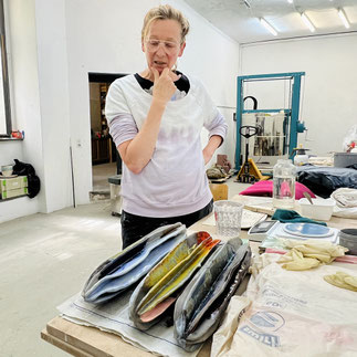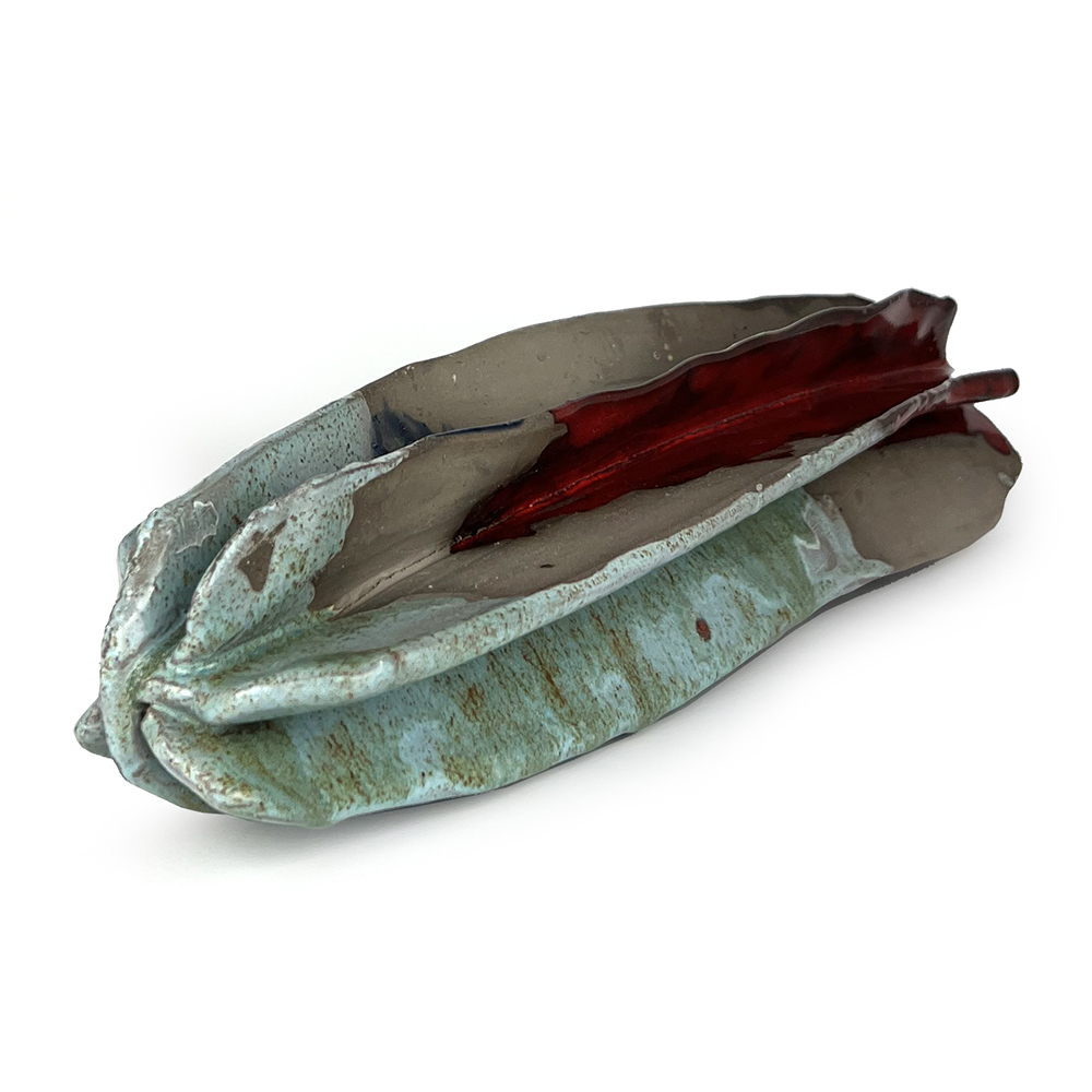 Les fleurs du sud – Über eine gemeinsame Freundin lernten wir die wunderbare Isa Melsheimer kennen und ihre Solo Show COMPOST (2021-2022) im MAMAC Musée d'Art Moderne et d'Art Contemporain in Nizza inspirierte uns zu der Edition „Les fleurs du sud“. Die Edition – eine Serie von Keramiken – regt mit ihrer Farb- und Formensprache die Fantasie an und gleichzeitig wirkt sie natürlich vertraut. Die organischen Körper aus betongrauem Ton erinnern an überdimensionale Samenkapseln, Kakteen oder zeppelinartige Flugkörper aus einer anderen Welt. Die kräftigen, farbigen Glasuren, die Melsheimer aufwendig selbst entwickelt, changieren von leuchtendem Rot-Orange über Oliv hin zu Aqua-Tönen und bilden beim Betrachter einen faszinierenden Bruch zu der gelernten natürlichen Form der Arbeit. Die Besonderheit von „Les fleurs du sud“, der Serie von 15 einzeln handgefertigten, unterschiedlich glasierten Keramiken liegt darin, dass man die Arbeit immer wieder drehen kann und ein neues Spiel aus Farbe, Form, Licht und Schatten entsteht. Published by VogelART im Herbst 2022.