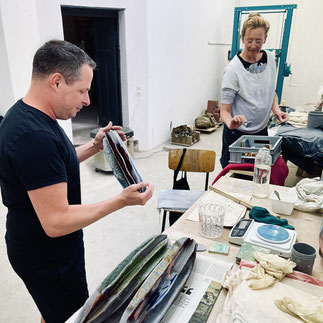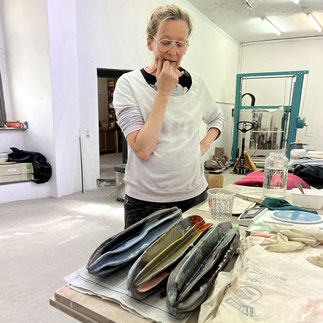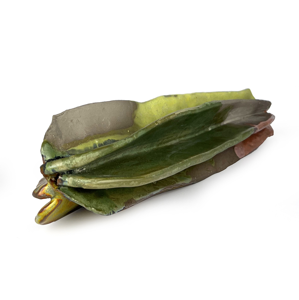 Les fleurs du sud – Über eine gemeinsame Freundin lernten wir die wunderbare Isa Melsheimer kennen und ihre Solo Show COMPOST (2021-2022) im MAMAC Musée d'Art Moderne et d'Art Contemporain in Nizza inspirierte uns zu der Edition „Les fleurs du sud“. Die Edition – eine Serie von Keramiken – regt mit ihrer Farb- und Formensprache die Fantasie an und gleichzeitig wirkt sie natürlich vertraut. Die organischen Körper aus betongrauem Ton erinnern an überdimensionale Samenkapseln, Kakteen oder zeppelinartige Flugkörper aus einer anderen Welt. Die kräftigen, farbigen Glasuren, die Melsheimer aufwendig selbst entwickelt, changieren von leuchtendem Rot-Orange über Oliv hin zu Aqua-Tönen und bilden beim Betrachter einen faszinierenden Bruch zu der gelernten natürlichen Form der Arbeit. Die Besonderheit von „Les fleurs du sud“, der Serie von 15 einzeln handgefertigten, unterschiedlich glasierten Keramiken liegt darin, dass man die Arbeit immer wieder drehen kann und ein neues Spiel aus Farbe, Form, Licht und Schatten entsteht. Published by VogelART im Herbst 2022.