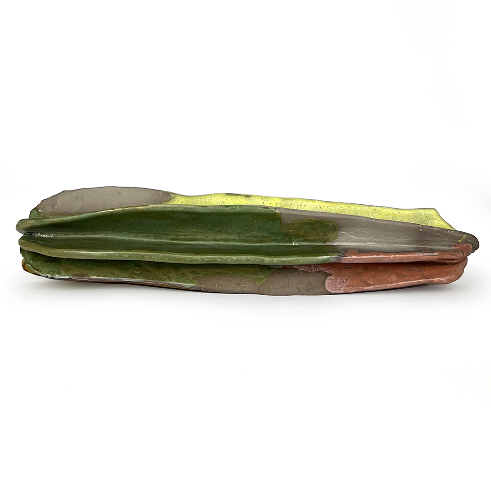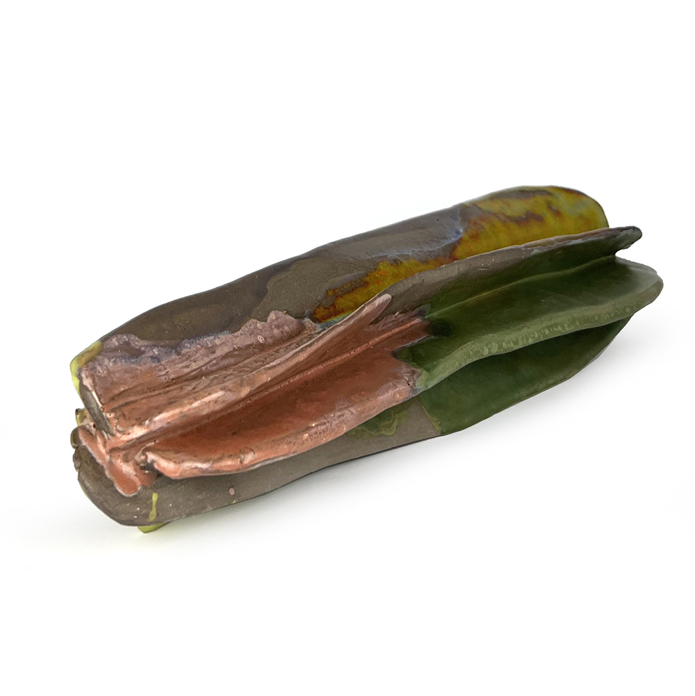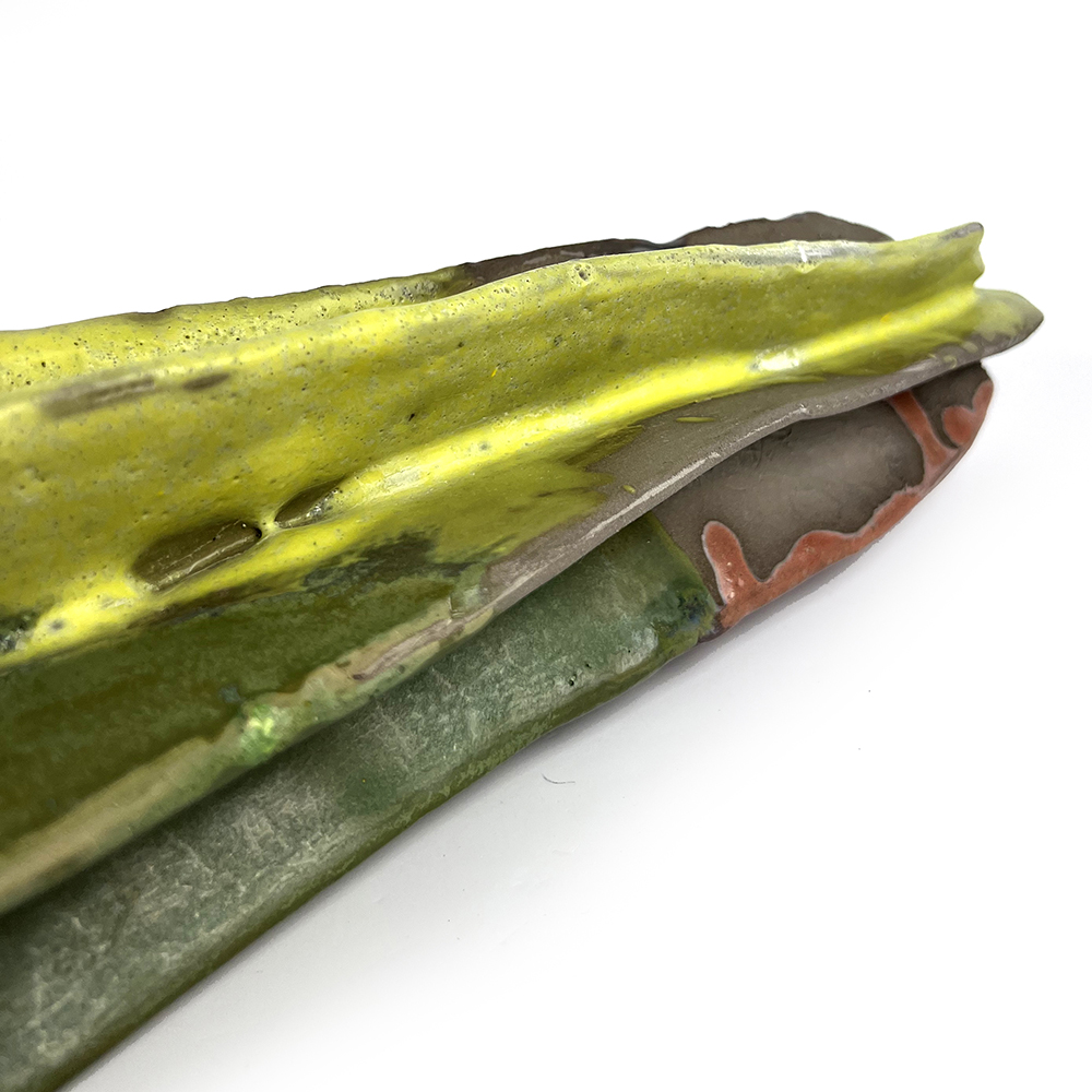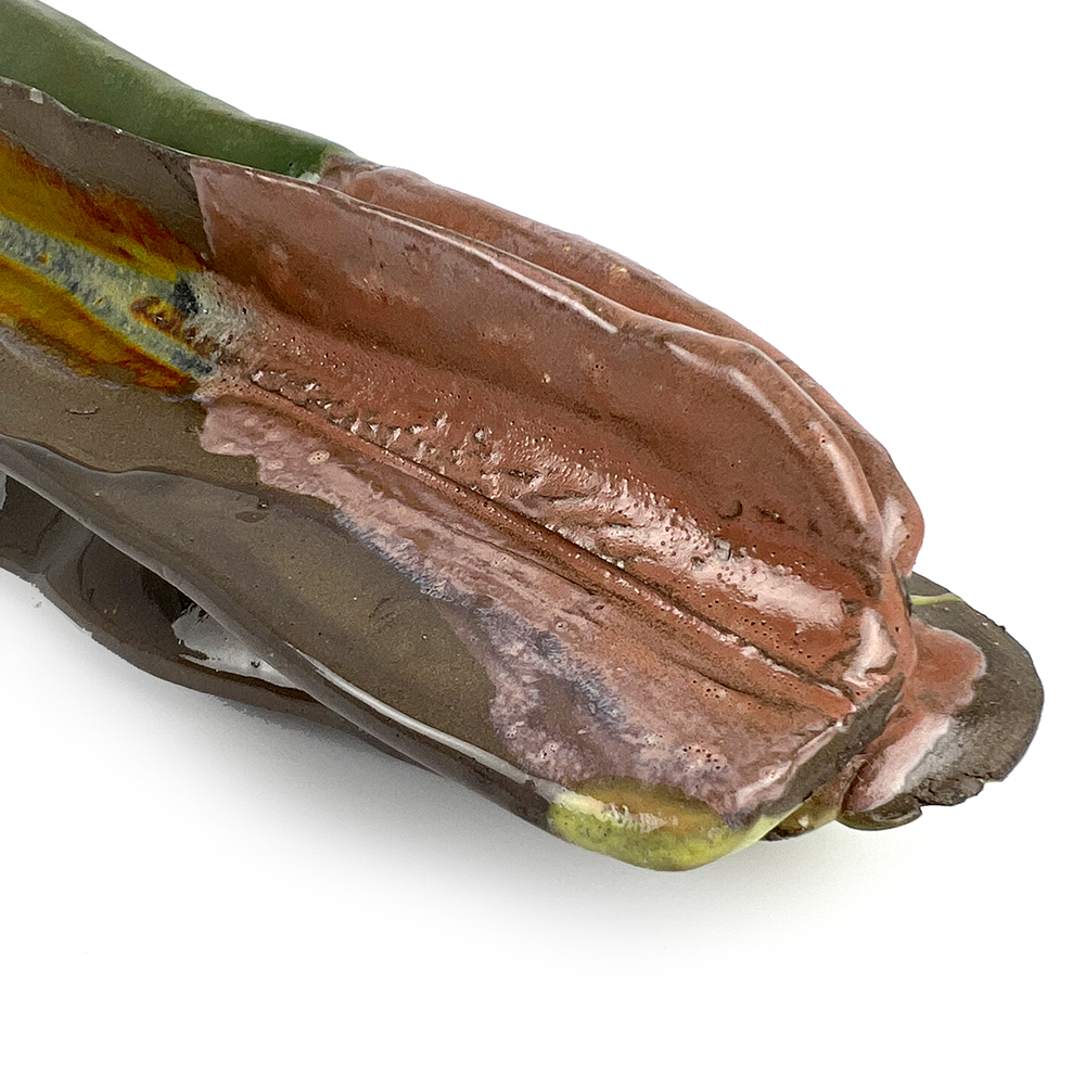 Isa Melsheimer – Les fleurs du sud IV, Serie of 15, Year 2022, Material Glazed ceramic, Size ca. 39 x 9 x 9 cm, Signature with Certificate, Special: Each is different and unique. The special feature of "Les fleurs du sud", the series of 15 individually handmade, differently glazed ceramics, is that the work can be turned over and over again, creating a new play of color, form, light and shadow. Published by VogelART, Munich 2022