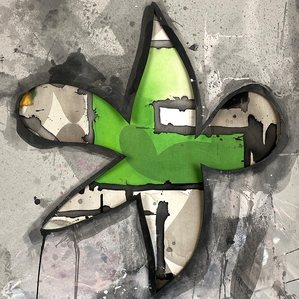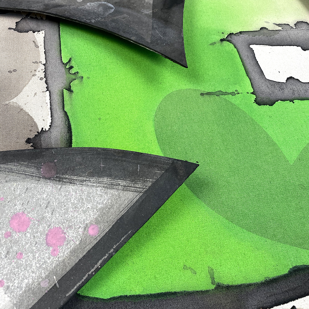 large-format editions is therefore unique. Jan-Ole cut 16 different cut-outs/stencils by hand and worked on them with color. The basic motive created especially for the edition was reproduced and
