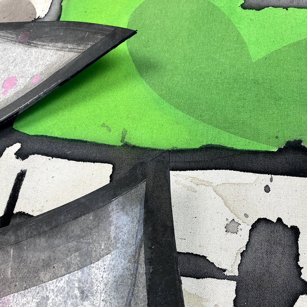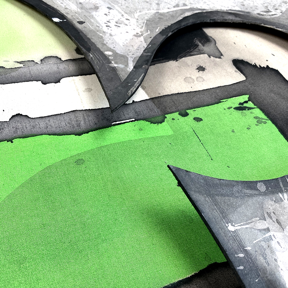 eine Edition zu entwickeln. Die Schablonen sollten aus ihrer Funktion als Mal-Werkzeug das später entsorgt wird zum zentralen Element einer uniquen Edition werden – Upcycling par excellence. Jede