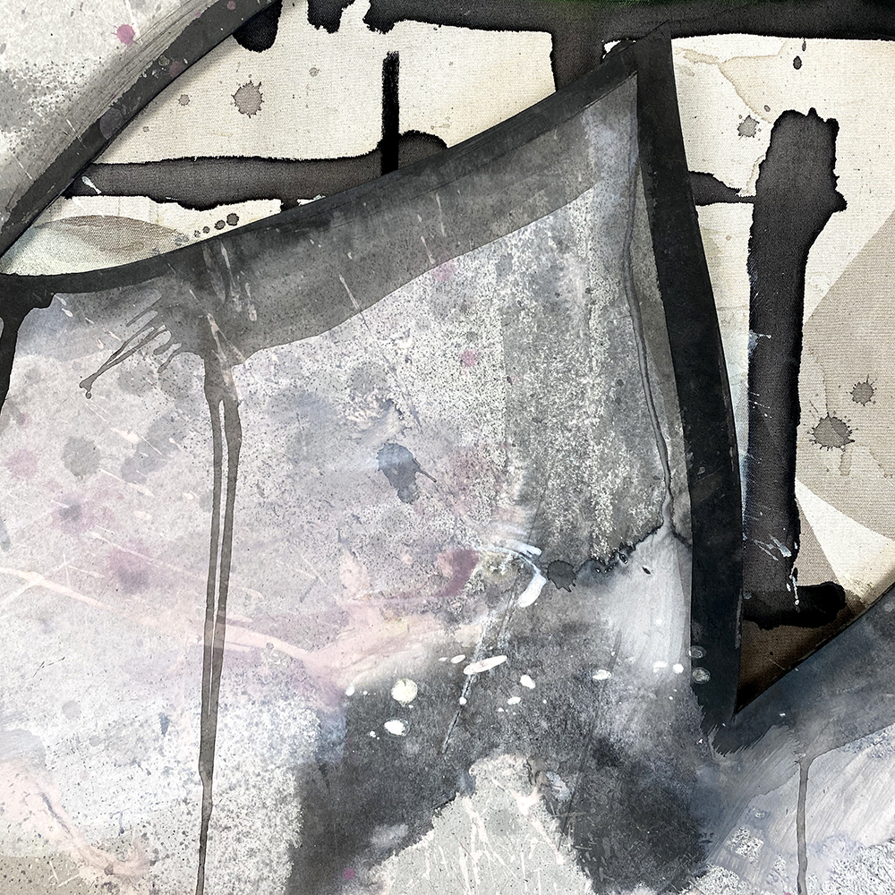 spielerisch sind. Fast transparent webt und überlagert er Strukturen, Logos, Topographien, Graffiti und alltägliche Texturen. Schiemanns Werk oszilliert zwischen abstrakten und figurativen