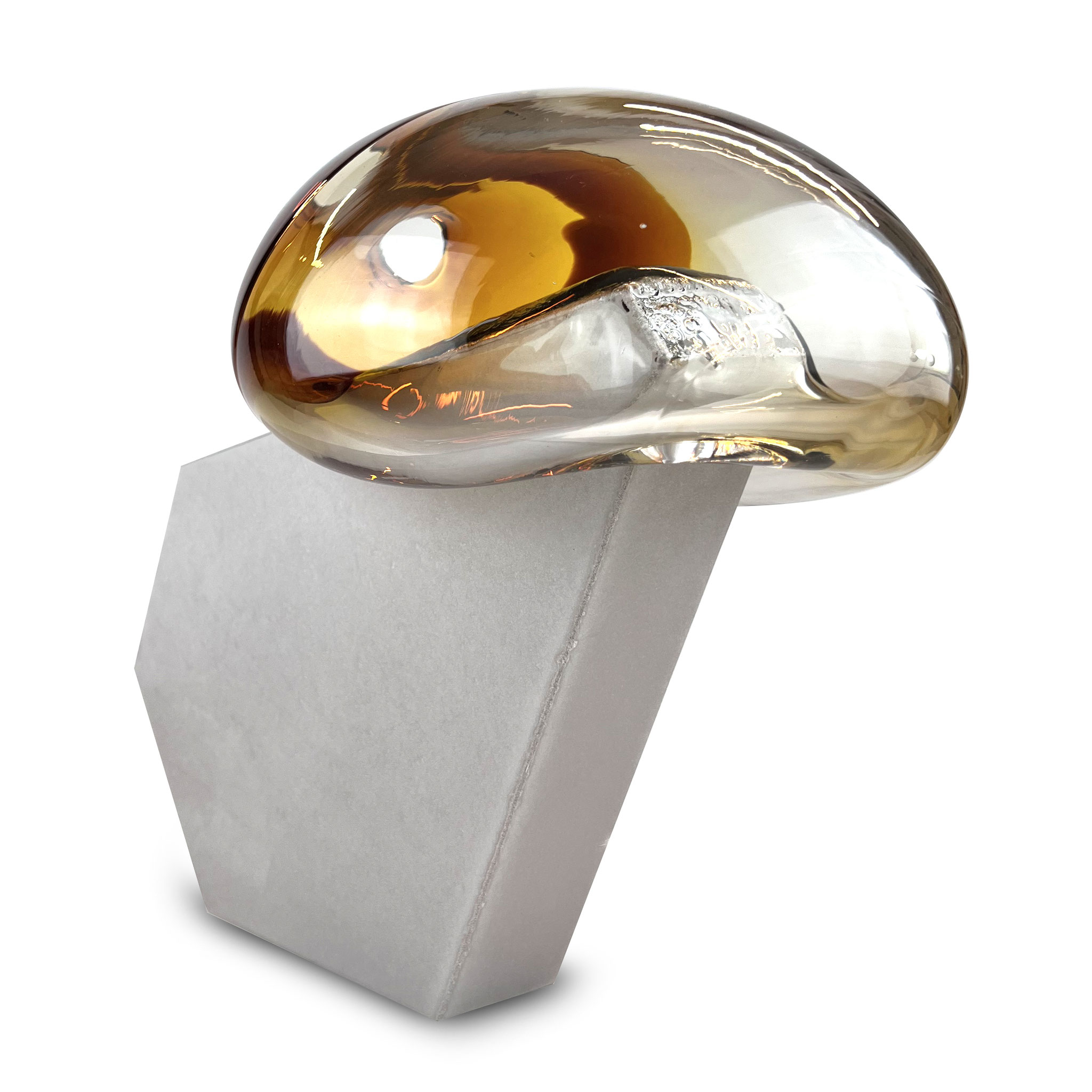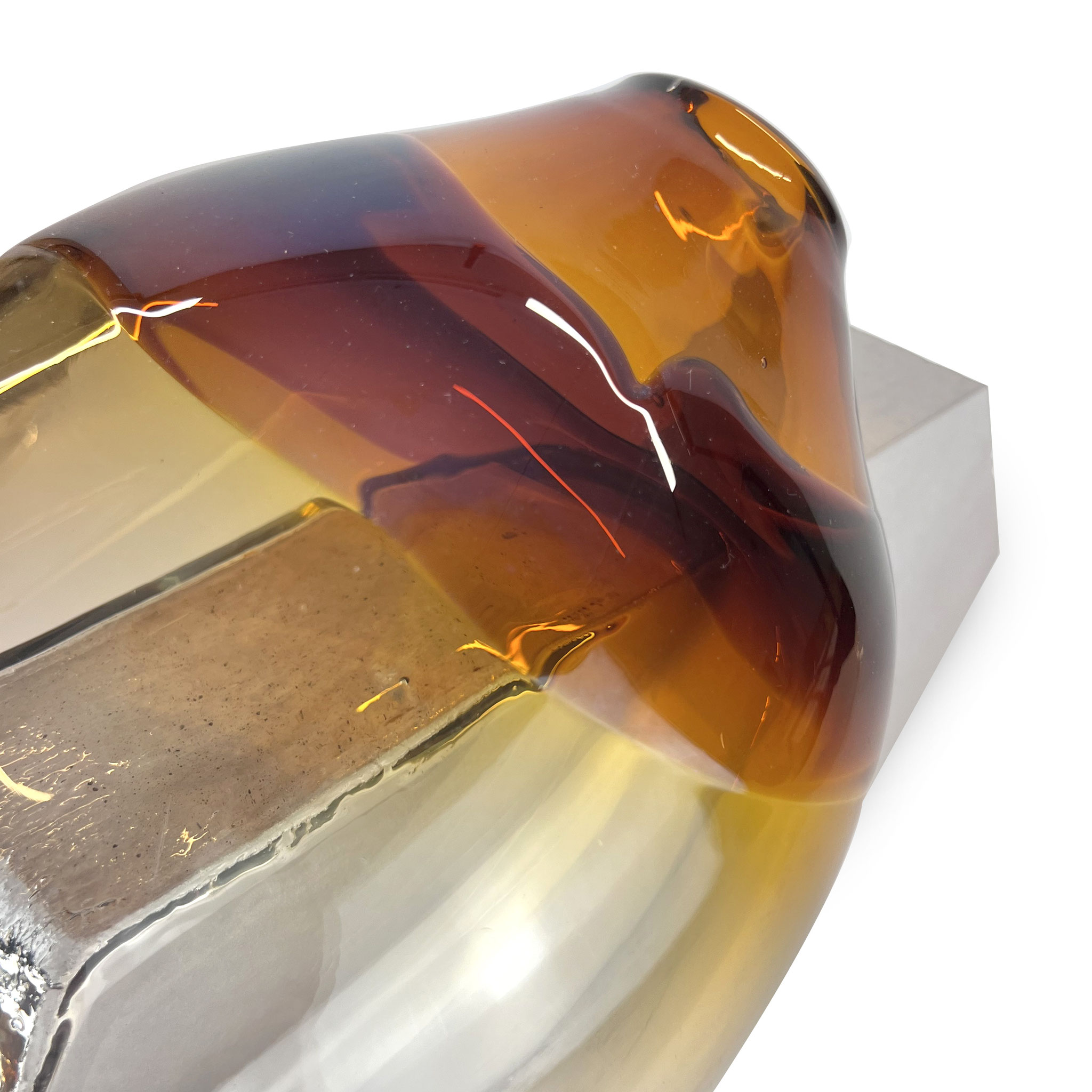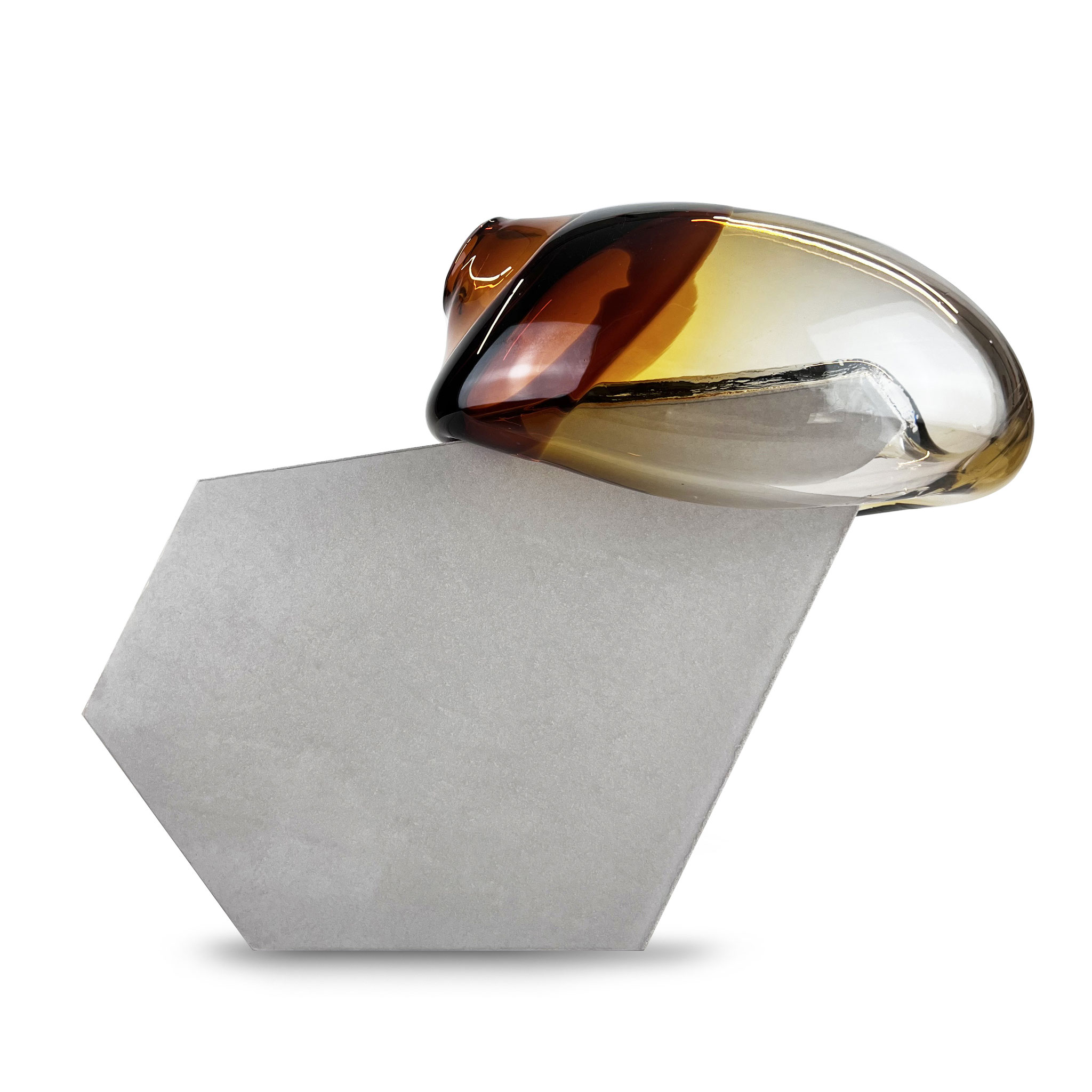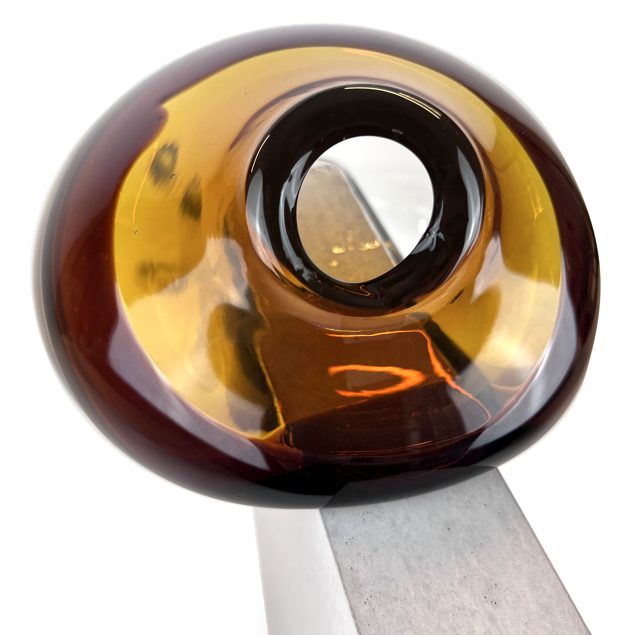 Morgane Tschiember – Bubble 12, Series of 15 + 4 AP + 4 PP, Year 2025, Material Colored mouth-blown glass on a concrete base, which is always the same in its basic shape. Size ca. 35 x 40 x 25 cm, Signed and numbered by the artist and a finger print. Each work / glass is dunique. Produced in Biot. Shipping in a box with two Boxes. Published by VogelART, Munich 2025