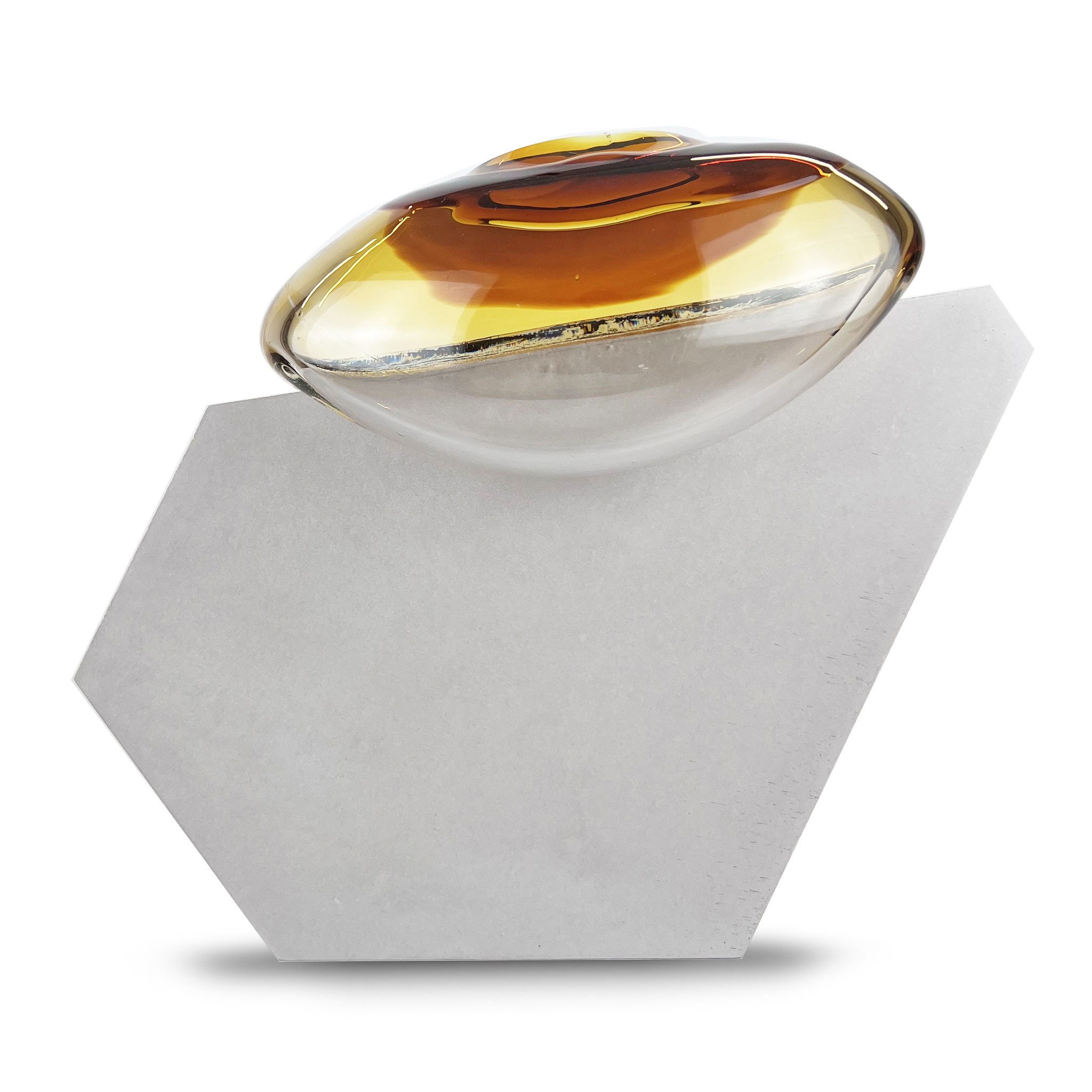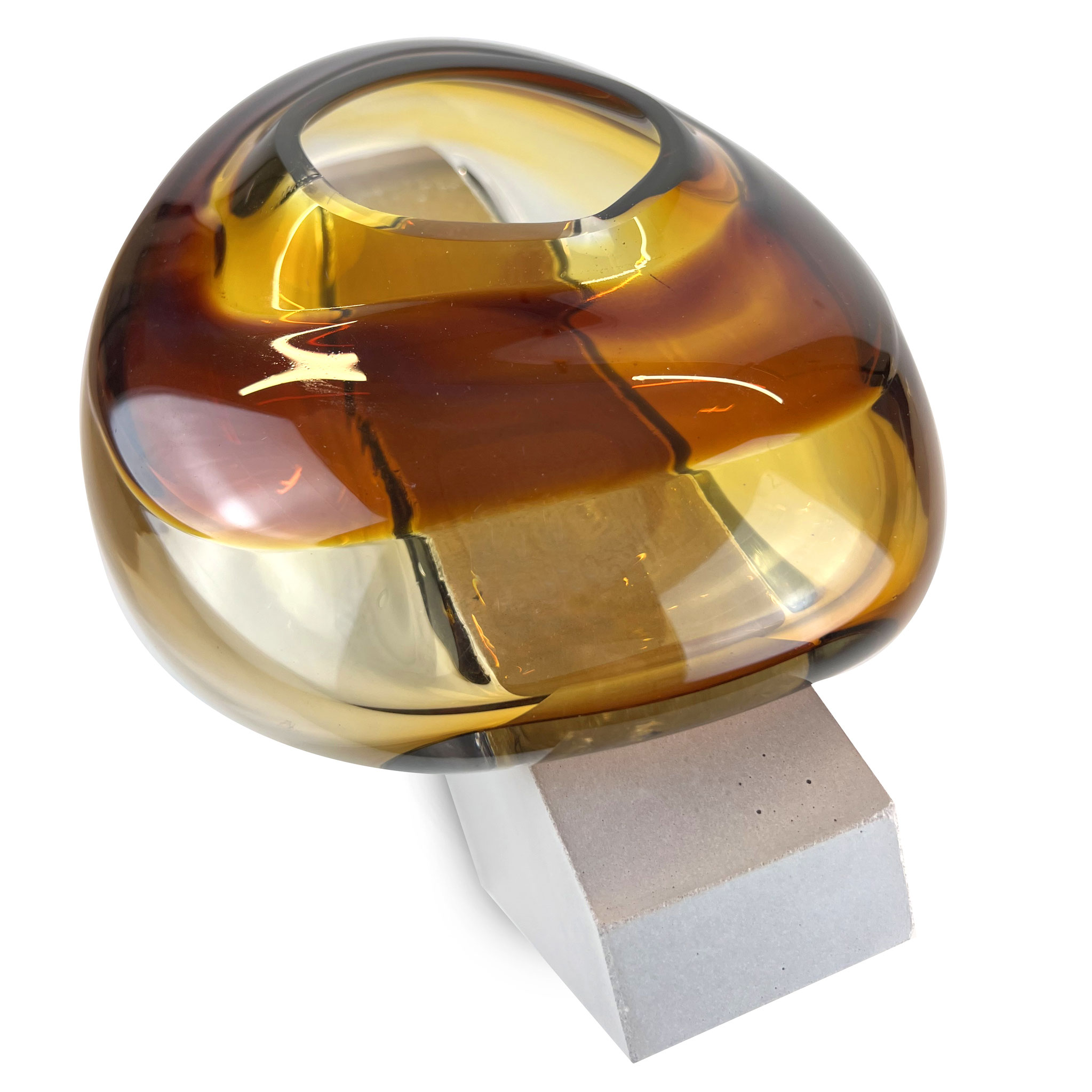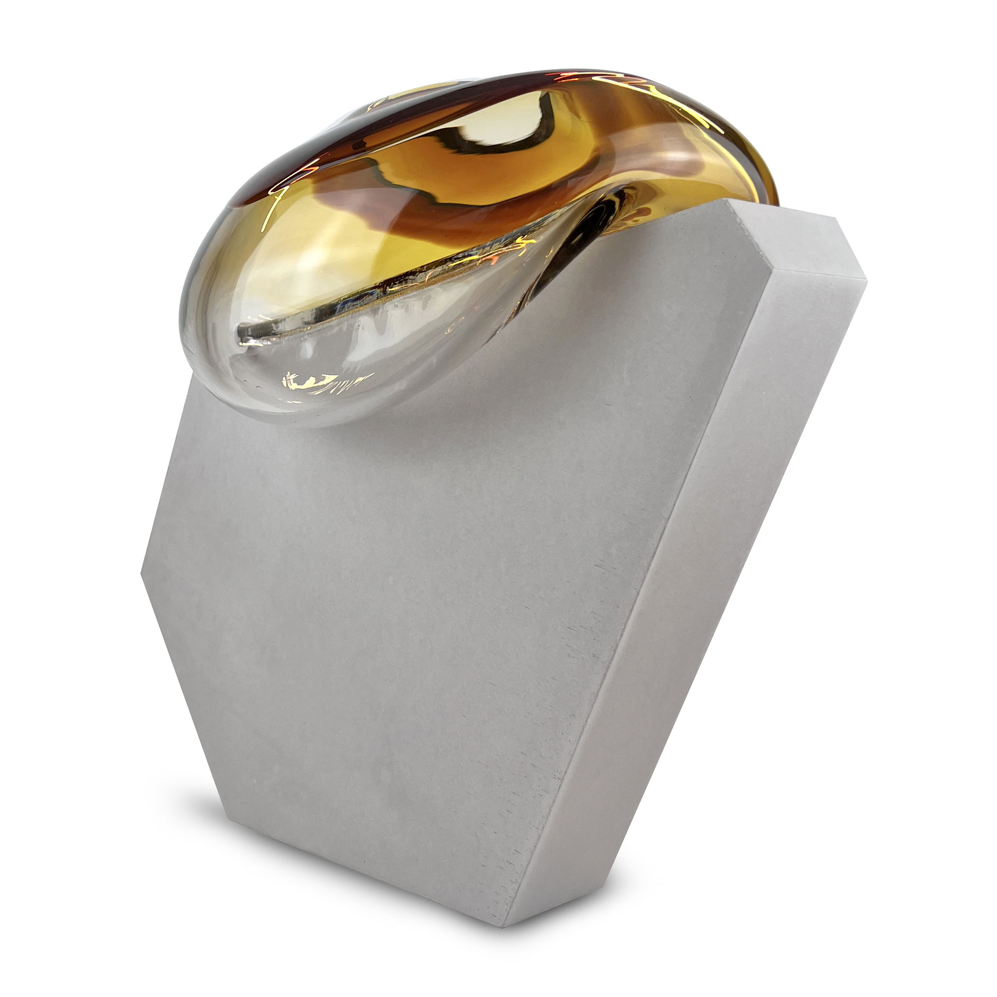 Morgane Tschiember – Bubble 13, Series of 15 + 4 AP + 4 PP, Year 2025, Material Colored mouth-blown glass on a concrete base, which is always the same in its basic shape. Size ca. 35 x 40 x 25 cm, Signed and numbered by the artist and a finger print. Each work / glass is dunique. Produced in Biot. Shipping in a box with two Boxes. Published by VogelART, Munich 2025