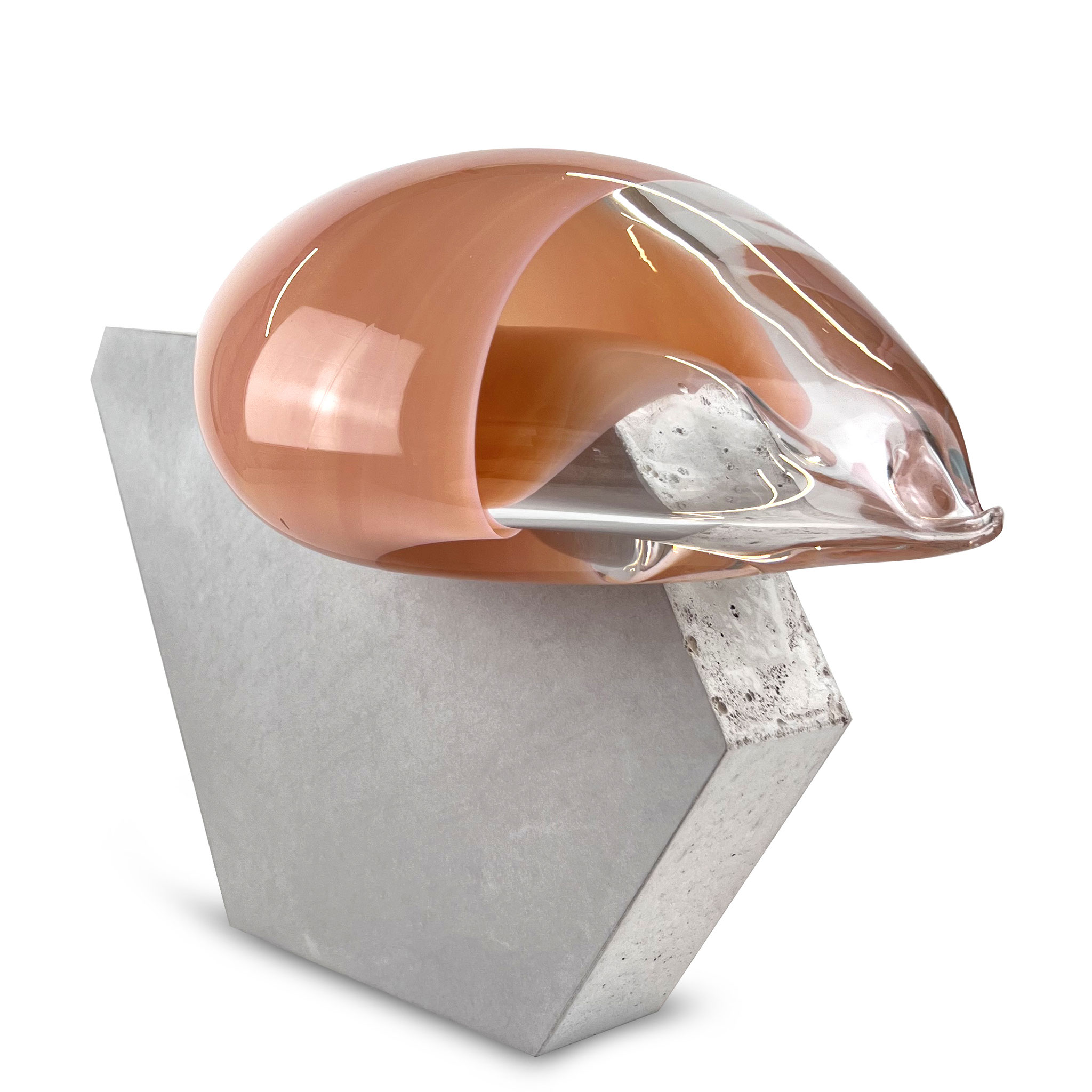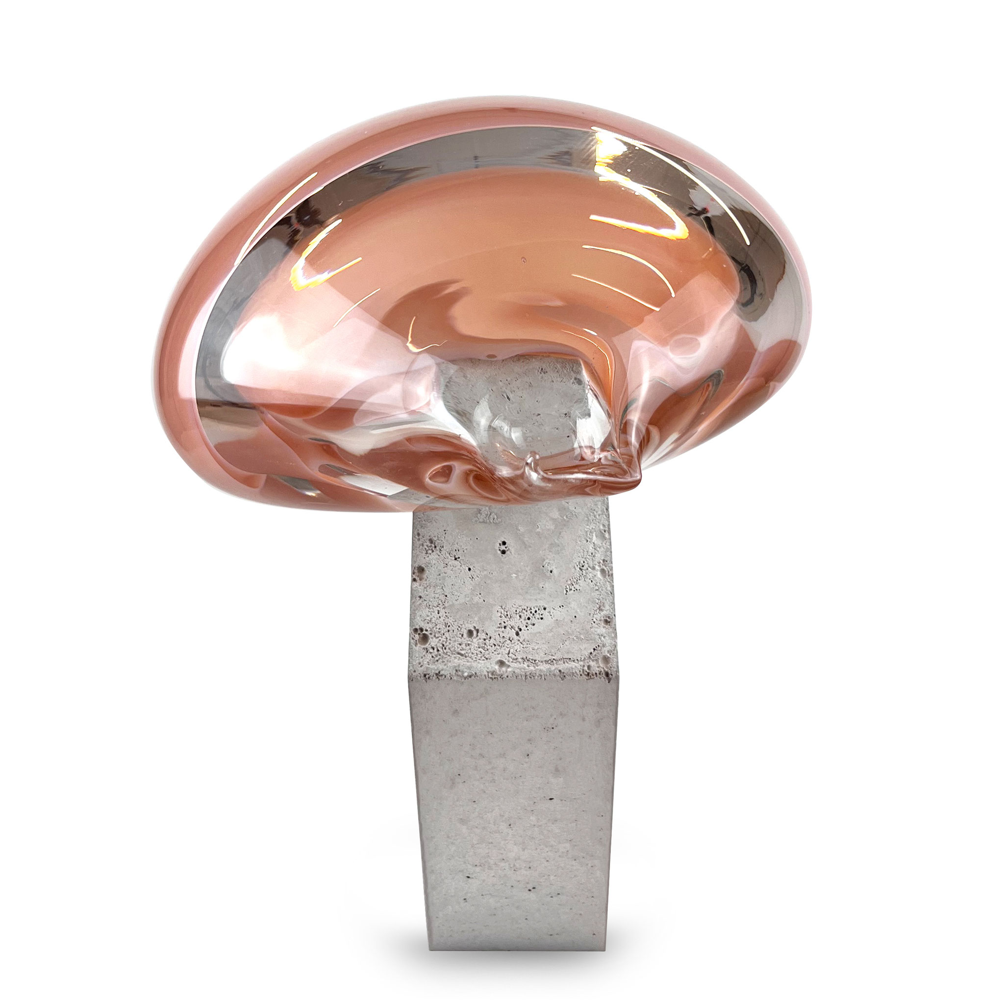 Morgane Tschiember – Bubble 15, Series of 15 + 4 AP + 4 PP, Year 2025, Material Colored mouth-blown glass on a concrete base, which is always the same in its basic shape. Size ca. 35 x 40 x 25 cm, Signed and numbered by the artist and a finger print. Each work / glass is dunique. Produced in Biot. Shipping in a box with two Boxes. Published by VogelART, Munich 2025