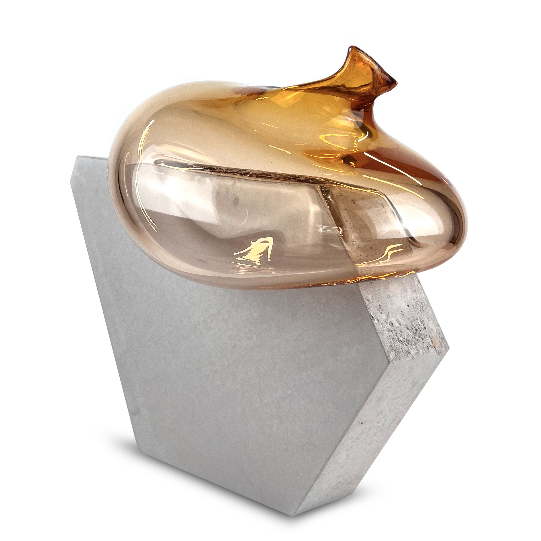 Morgane Tschiember – Bubble 8, Series of 15 + 4 AP + 4 PP, Year 2025, Material Colored mouth-blown glass on a concrete base, which is always the same in its basic shape. Size ca. 35 x 40 x 25 cm, Signed and numbered by the artist and a finger print. Each work / glass is dunique. Produced in Biot. Shipping in a box with two Boxes. Published by VogelART, Munich 2025