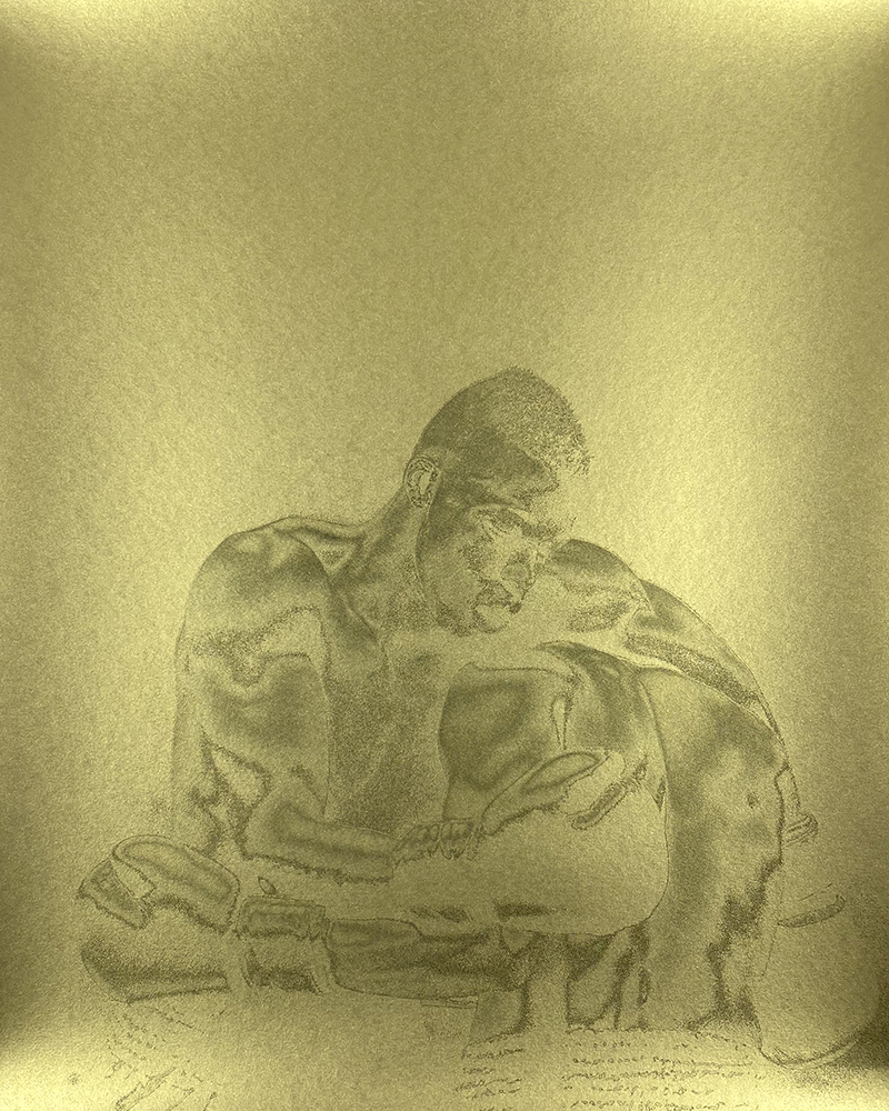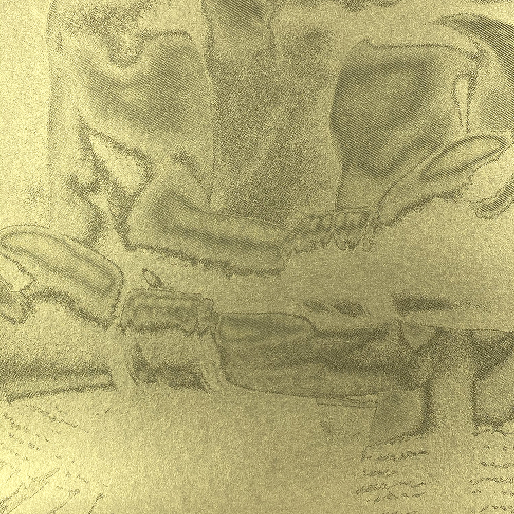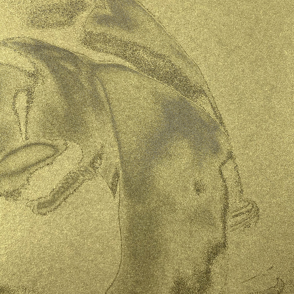 Körperbilder aus Wrestling und Boxen – Körperinszenierungen – materialisieren sich hier im Helldunkel der Kontraste, sie werden durch das Spiel des Lichts auf der Haut hervorgehoben, sind Schmuck, Schutz, Emotion, Wärme, Widerstand – alles zugleich. So entstanden durch das Siebdruckverfahren 3 Motive zu je 20 Exemplaren in jeweils verschiedenen Druckfarben in schwarz, weiß, gold und silber. 60 Unikate, jedes anders und sehr besonders.