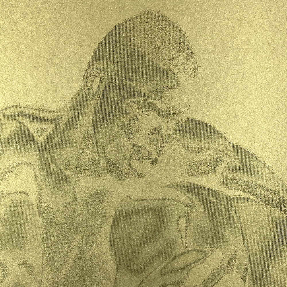 Body images from wrestling and boxing - body stagings - materialize here in the chiaroscuro of contrasts, they are highlighted by the play of light on the skin, are adornment, protection, emotion, warmth, resistance - all at once. Thus, the screen printing process created 3 motifs of 20 examples each in different printing colors in black, white, gold and silver. 60 unique pieces, each different and very special.