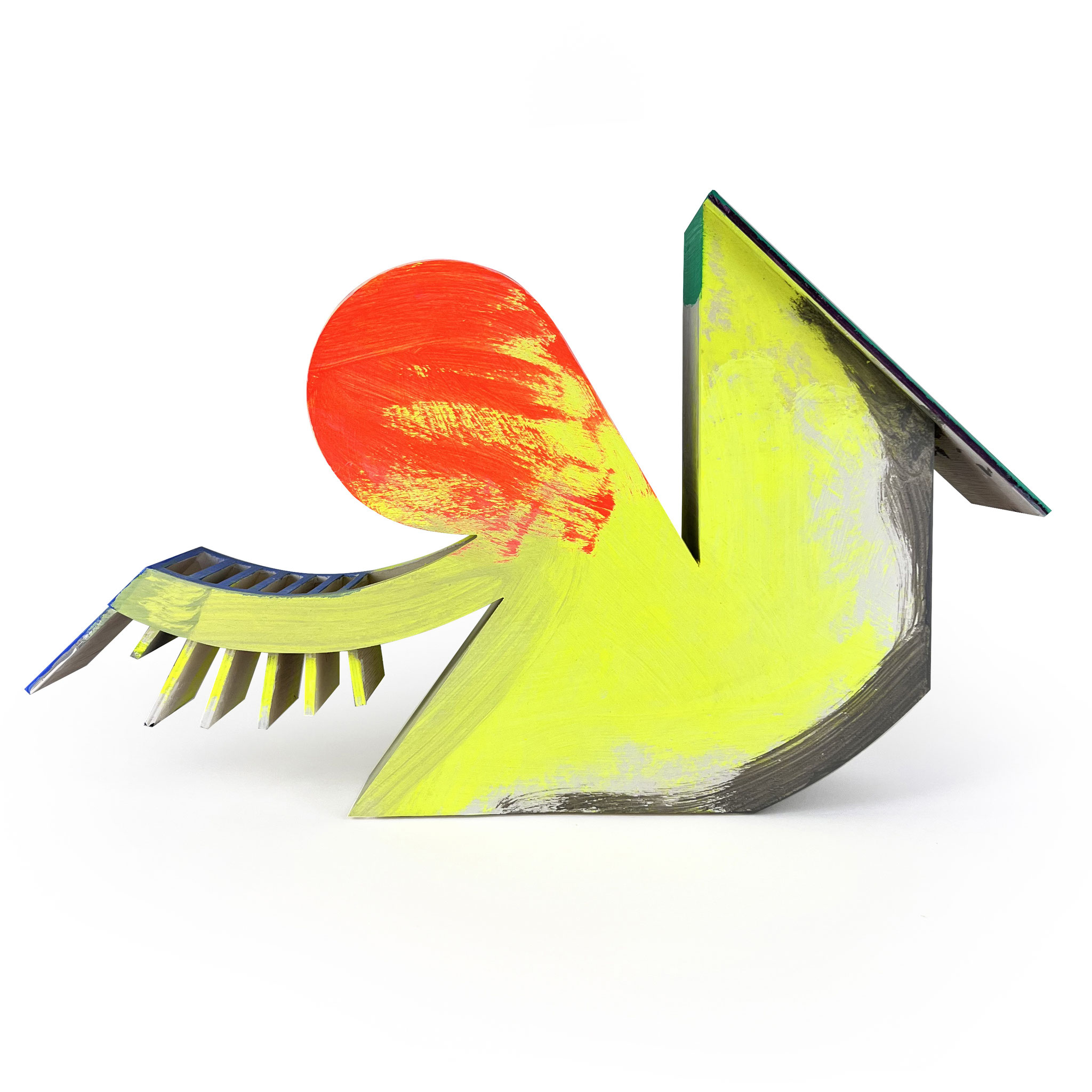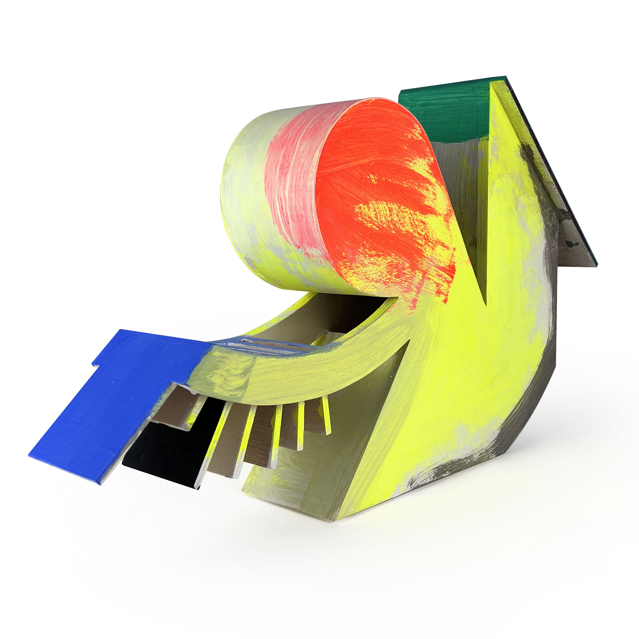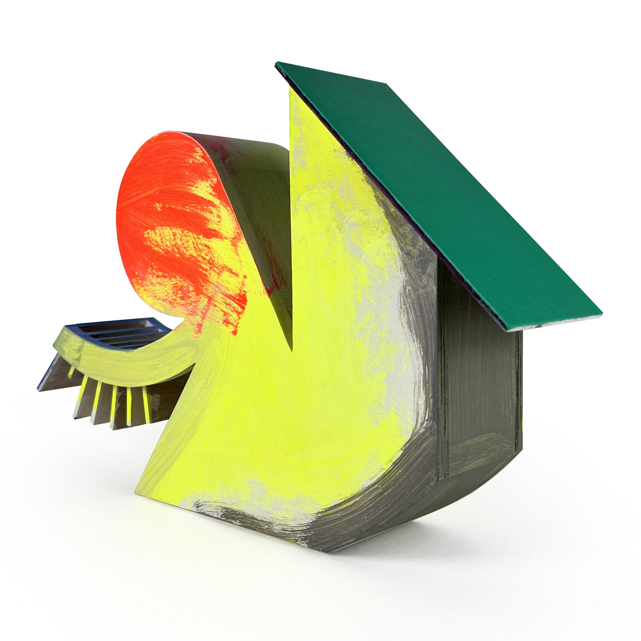 Combining architectural sharpness with poetic ambiguity, the sculptures seem to float between plastic, architectural model, and thought object. Each piece in the ‚Sister‘ edition was hand-built and individually painted by the artist, turning every object into a singular artwork. Their colorful surfaces reveal Scheibitz’s painterly sensibility, while the volume and silhouette hint at his interest in spatial construction. ‚Sister‘ is an artistic statement in a row – powerful, compositionally dense, and yet with great lightness.