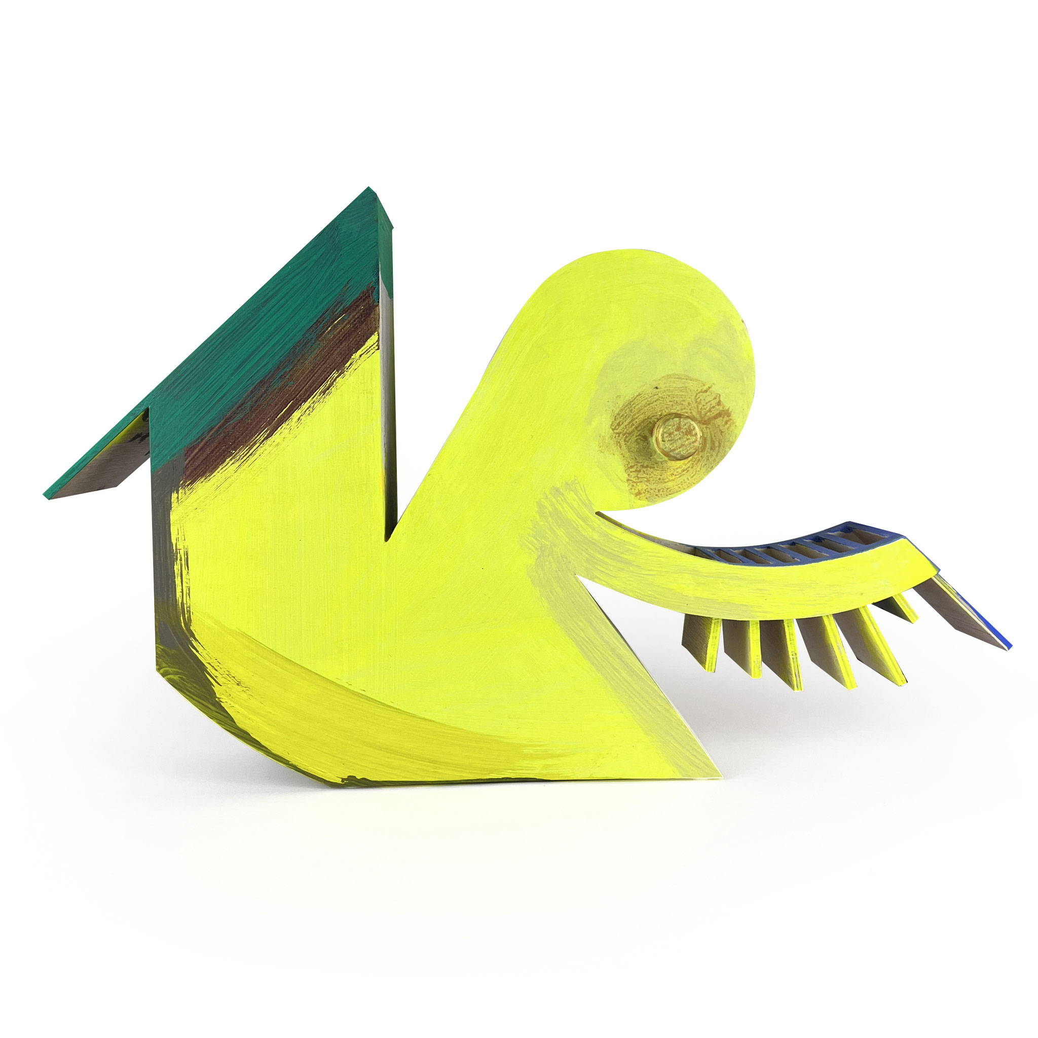 With ‚Sister‘, Thomas Scheibitz translates his distinct iconography into an edition of sculptural objects. The idea for this series emerged during a studio visit in spring 2025, where a vividly colored wooden sculpture immediately captured our attention and became the basis for this project. ‚Sister‘ is based on the 2007 work Gypsy Rose Lee (named after the US actress and burlesque dancer, 1911–1970), which was part of an exhibition at the MMK Frankfurt am Main in 2012.