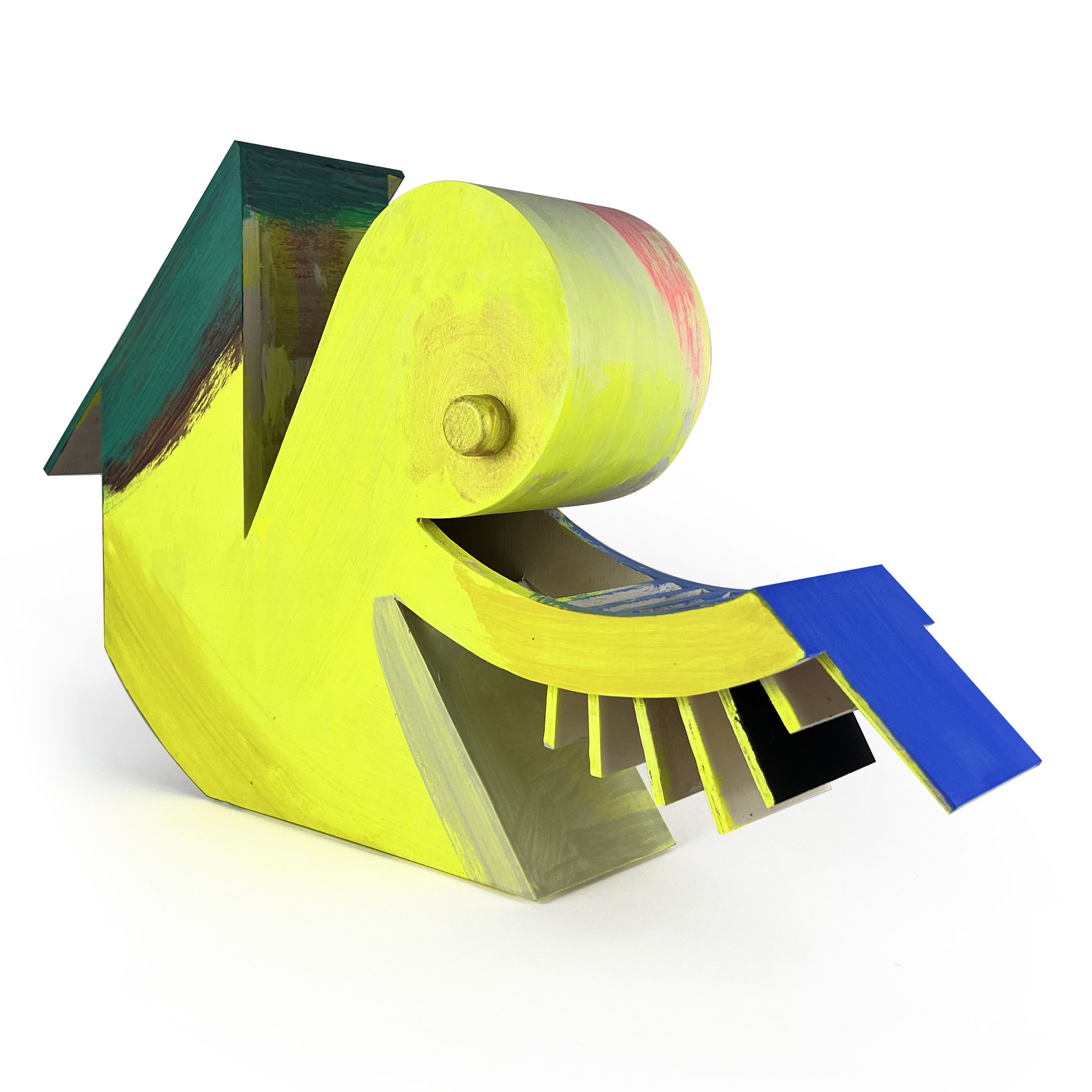 With ‚Sister‘, Thomas Scheibitz translates his distinct iconography into an edition of sculptural objects. The idea for this series emerged during a studio visit in spring 2025, where a vividly colored wooden sculpture immediately captured our attention and became the basis for this project. ‚Sister‘ is based on the 2007 work Gypsy Rose Lee (named after the US actress and burlesque dancer, 1911–1970), which was part of an exhibition at the MMK Frankfurt am Main in 2012.