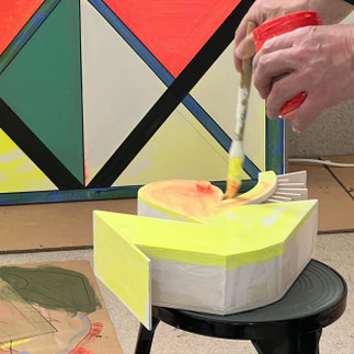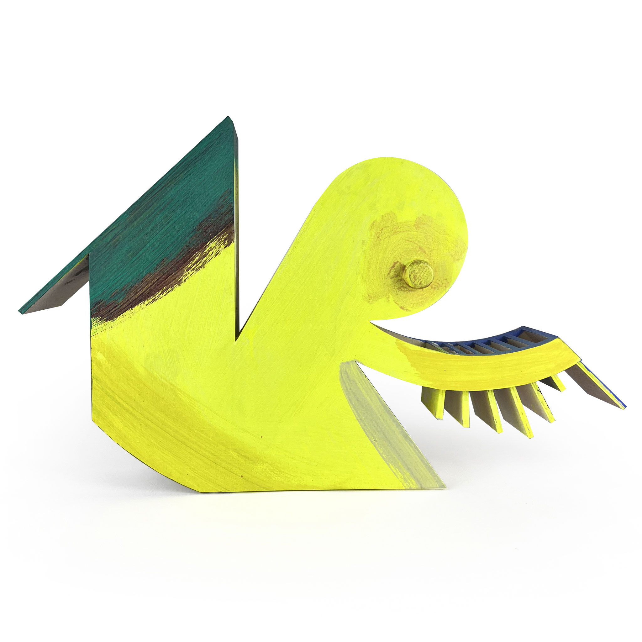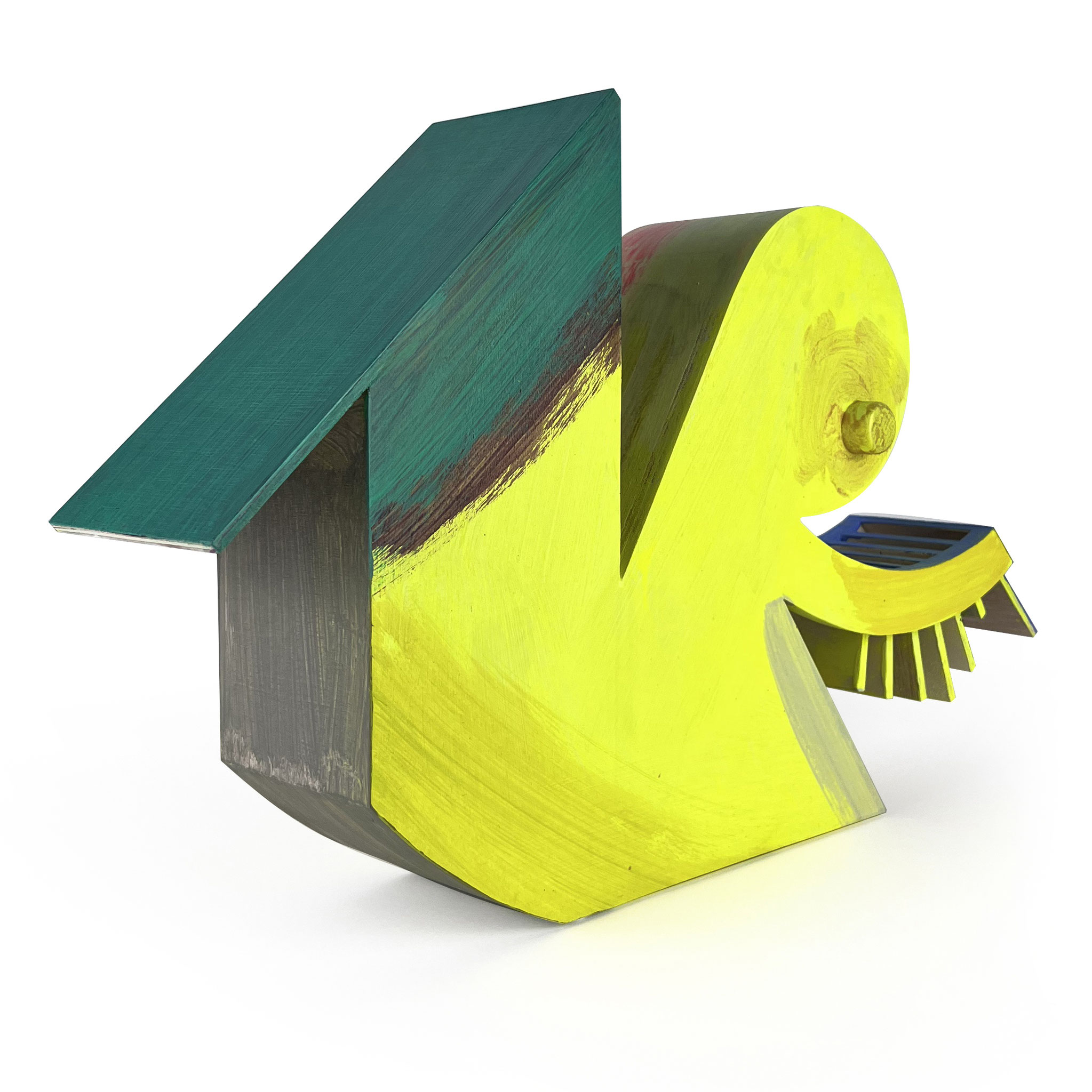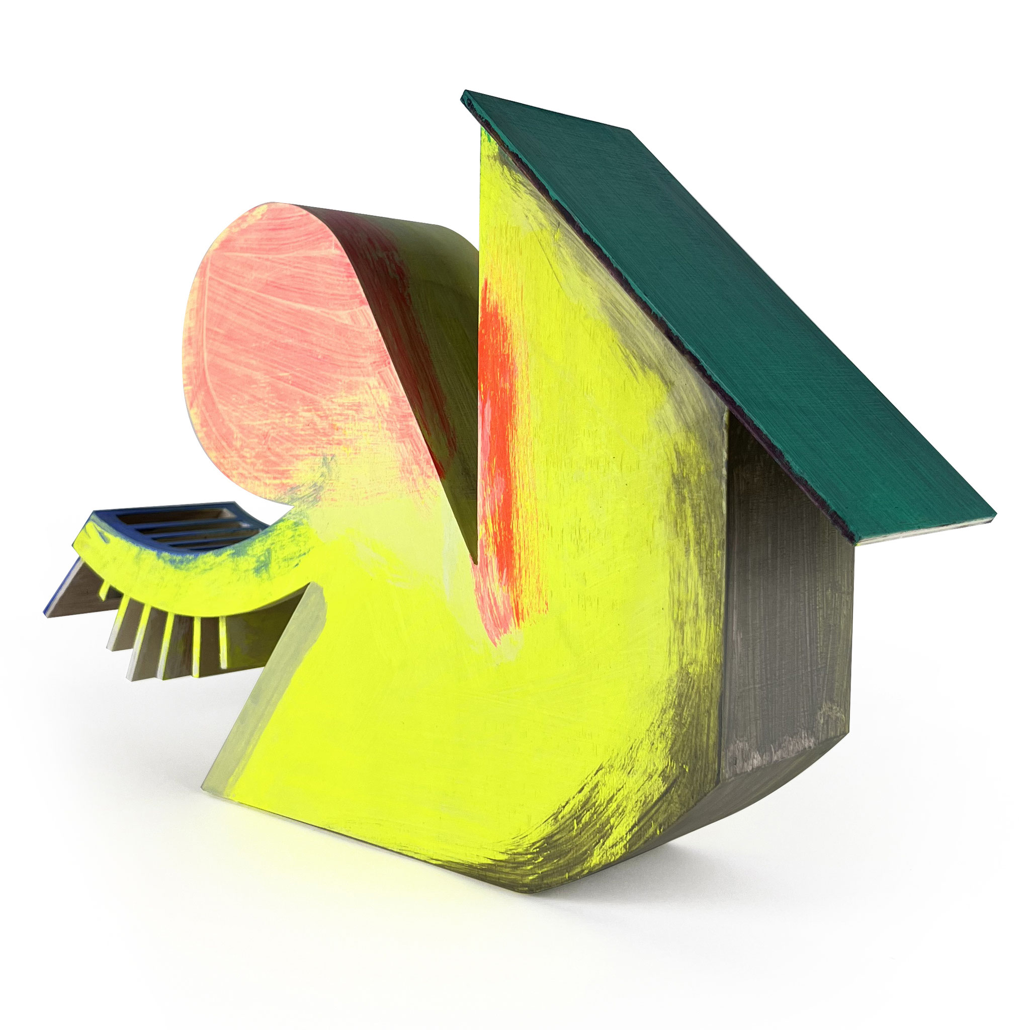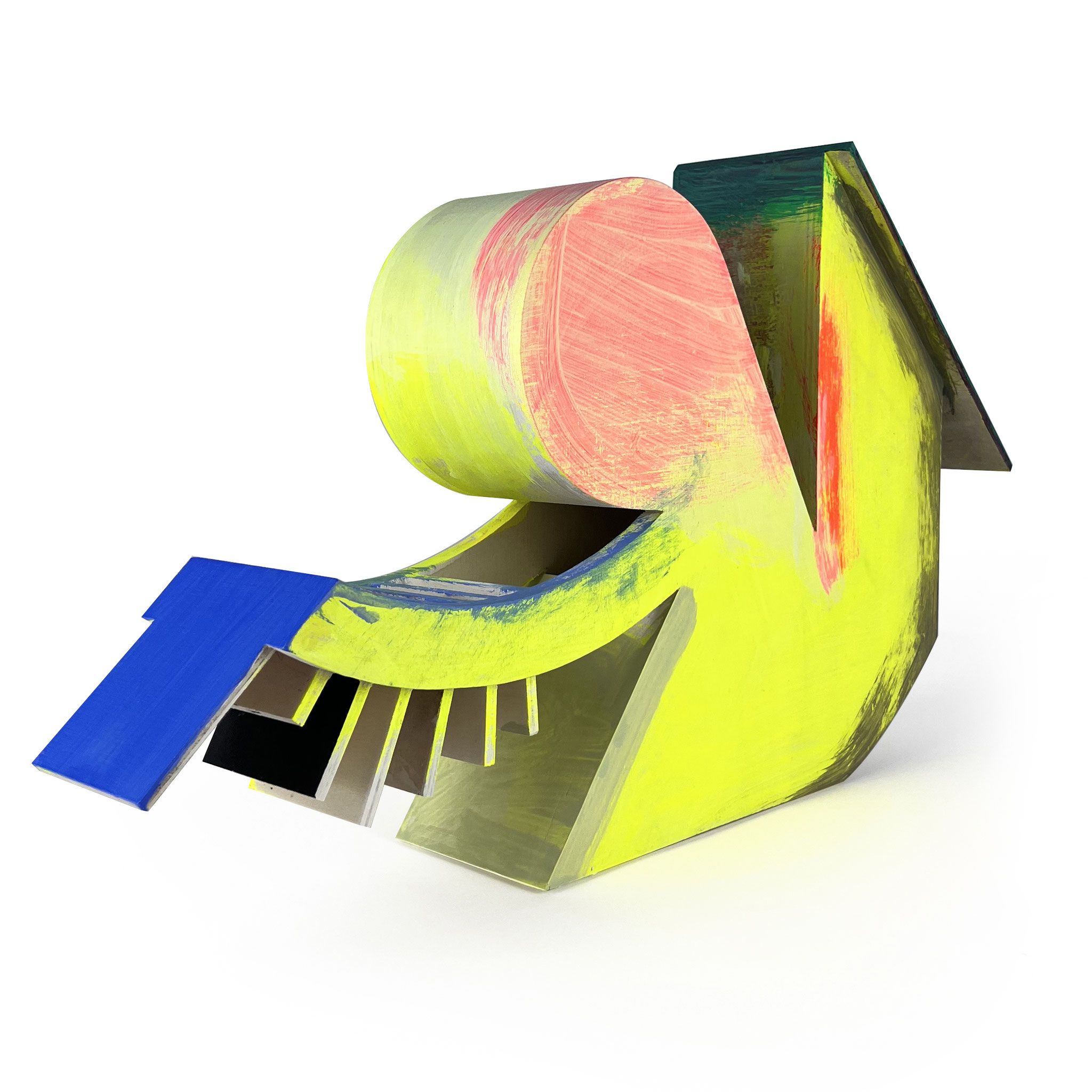 Combining architectural sharpness with poetic ambiguity, the sculptures seem to float between plastic, architectural model, and thought object. Each piece in the ‚Sister‘ edition was hand-built and individually painted by the artist, turning every object into a singular artwork. Their colorful surfaces reveal Scheibitz’s painterly sensibility, while the volume and silhouette hint at his interest in spatial construction. ‚Sister‘ is an artistic statement in a row – powerful, compositionally dense, and yet with great lightness.
