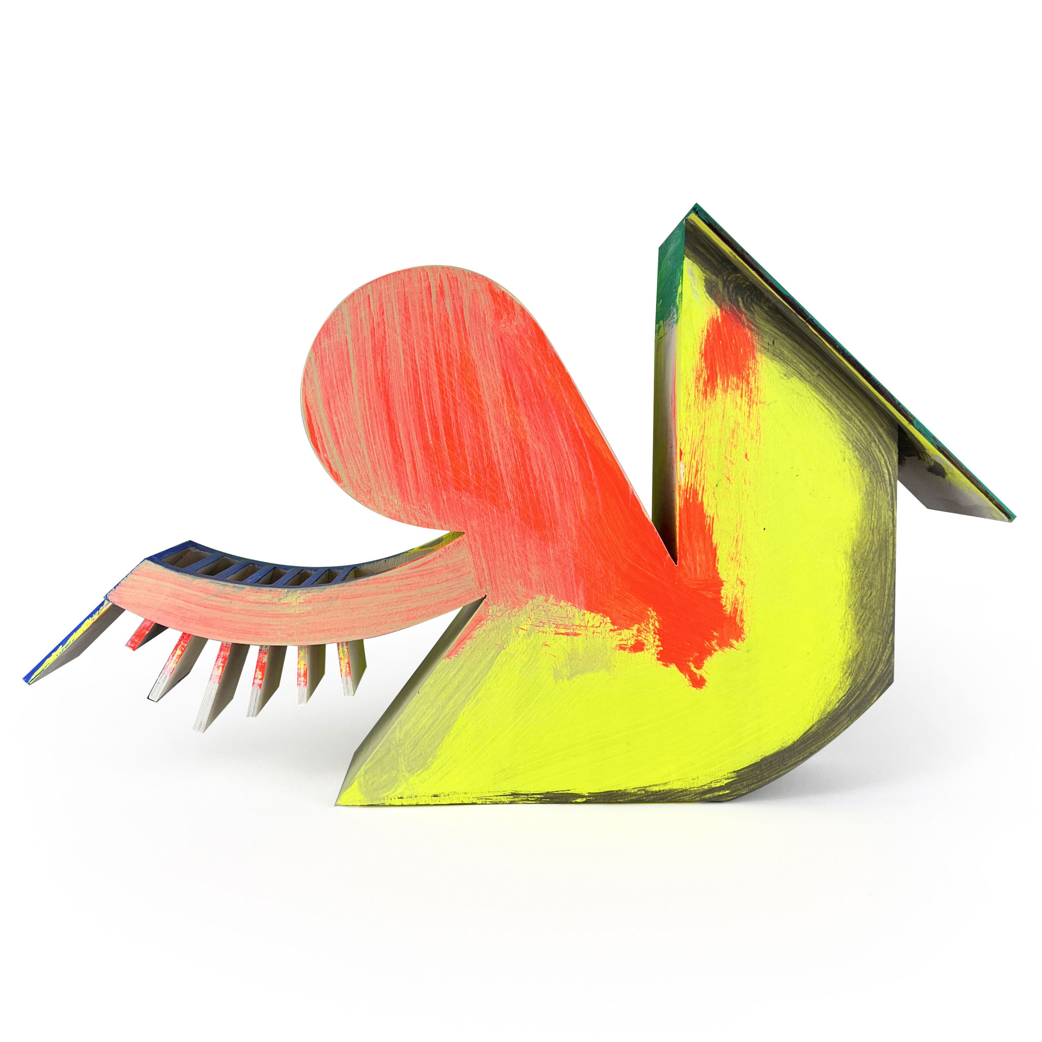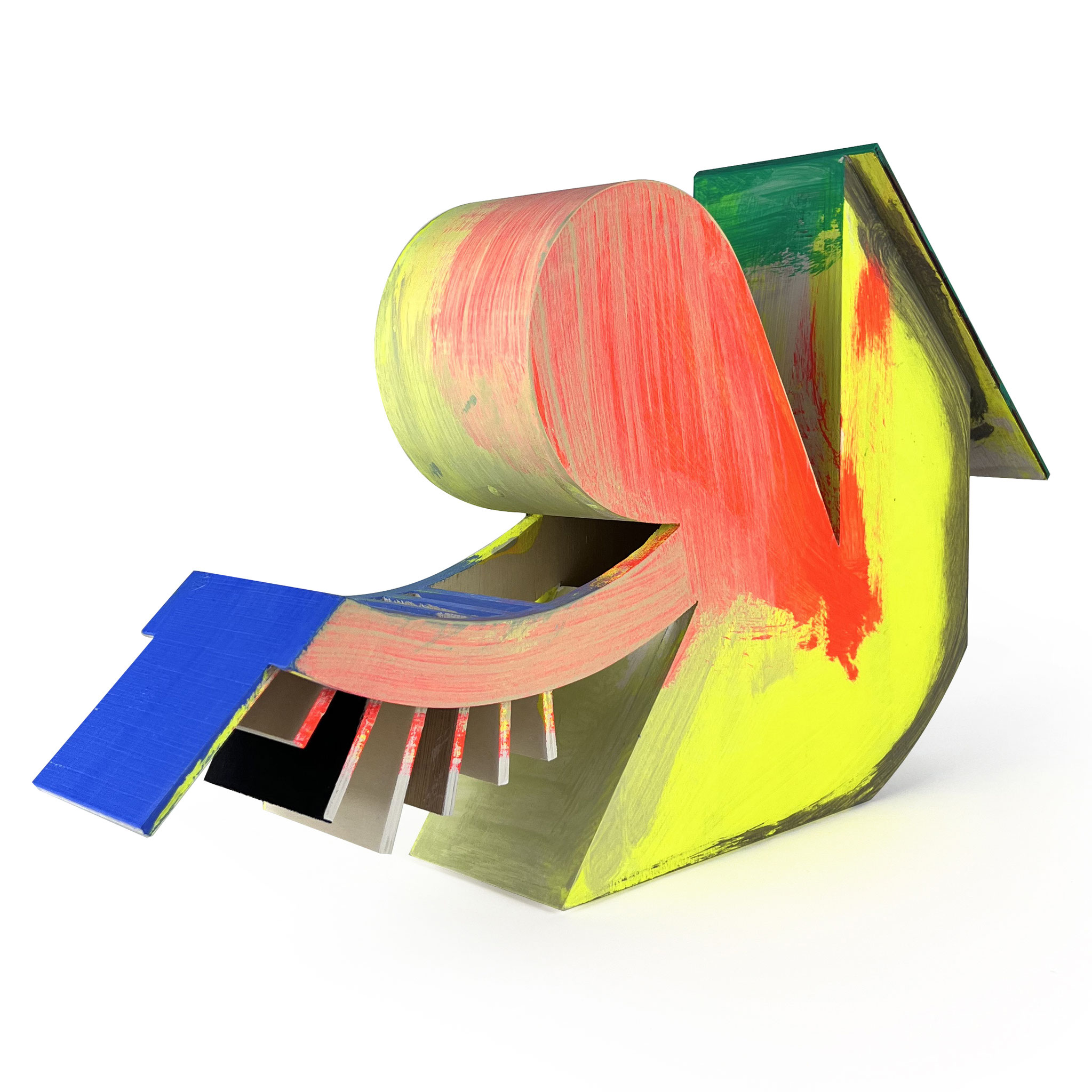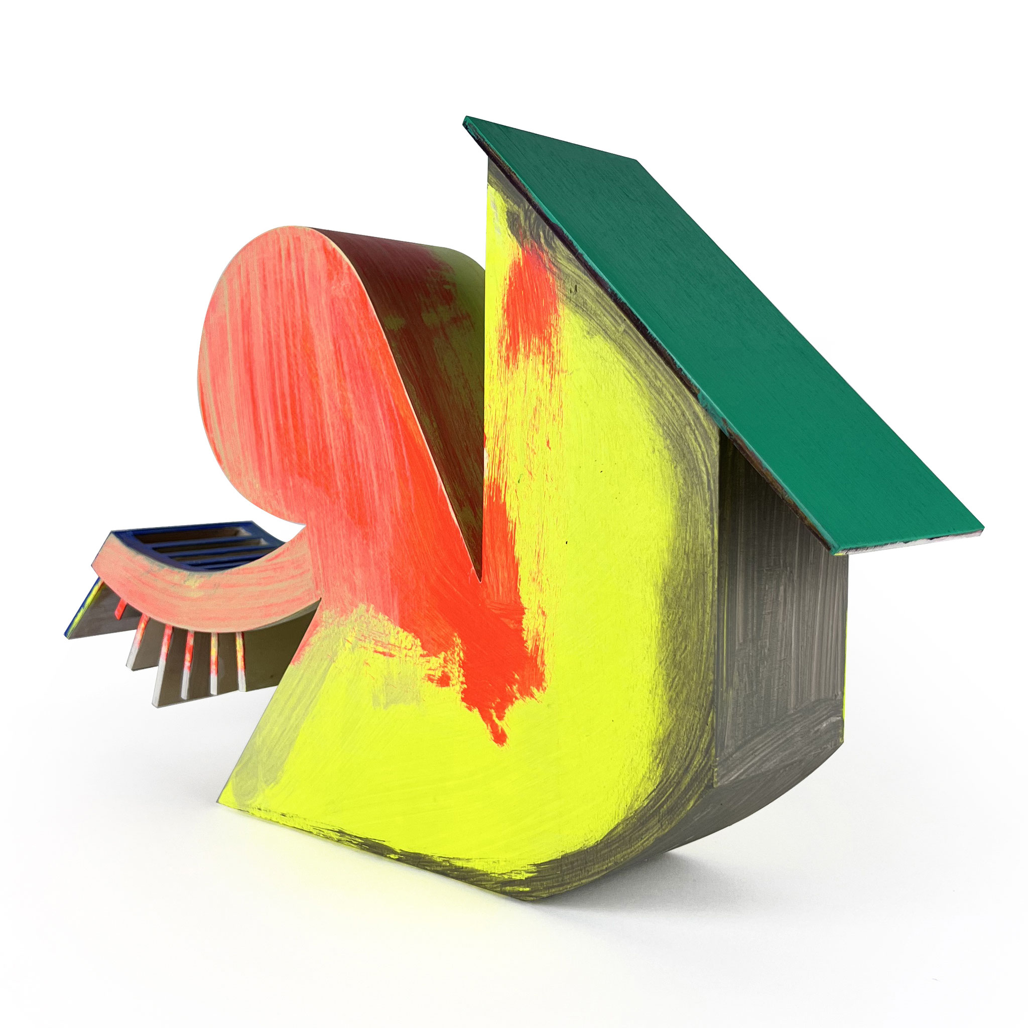 Combining architectural sharpness with poetic ambiguity, the sculptures seem to float between plastic, architectural model, and thought object. Each piece in the ‚Sister‘ edition was hand-built and individually painted by the artist, turning every object into a singular artwork. Their colorful surfaces reveal Scheibitz’s painterly sensibility, while the volume and silhouette hint at his interest in spatial construction. ‚Sister‘ is an artistic statement in a row – powerful, compositionally dense, and yet with great lightness.
