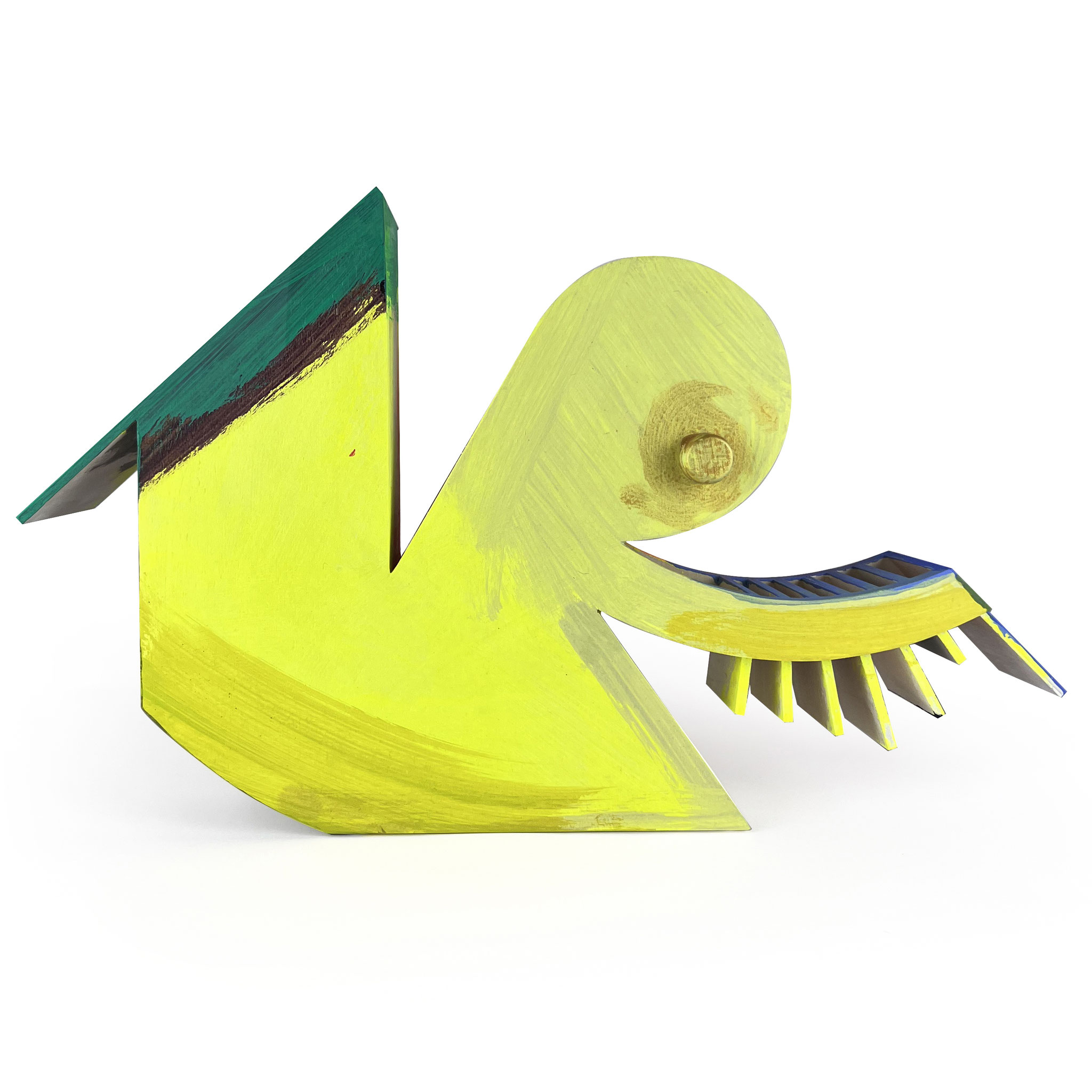 With ‚Sister‘, Thomas Scheibitz translates his distinct iconography into an edition of sculptural objects. The idea for this series emerged during a studio visit in spring 2025, where a vividly colored wooden sculpture immediately captured our attention and became the basis for this project. ‚Sister‘ is based on the 2007 work Gypsy Rose Lee (named after the US actress and burlesque dancer, 1911–1970), which was part of an exhibition at the MMK Frankfurt am Main in 2012.